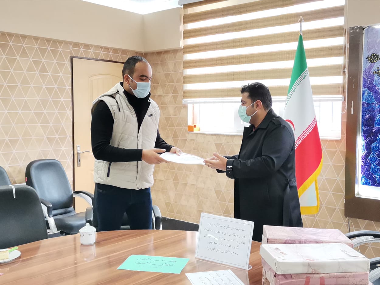 جلسه ماهیانه مراقبین ناظر مراکز خدمات جامع سلامت شهرستان فیروزه صبح روز شنبه 22 آبان ماه برگزار و از خانم ها نگار کاملی، نقیه شورورزی، حدیثه هدایتی نیا، مهری تقی زاده، بتول فیض آبادی، مریم سادات حسینی مراقبین ناظر مراکز خدمات جامع سلامت به جهت پیگیری مستمر سلامت دانش آموزان و آقای عبداله آبادی کارشناس تریبت بدنی و سلامت آموزش و پرورش شهرستان فیروزه به جهت همکاری و پیگیری در راستای اجرای طرح مکمل یاری در سال تحصیلی ٩٩_۴٠٠ تقدیر شد.