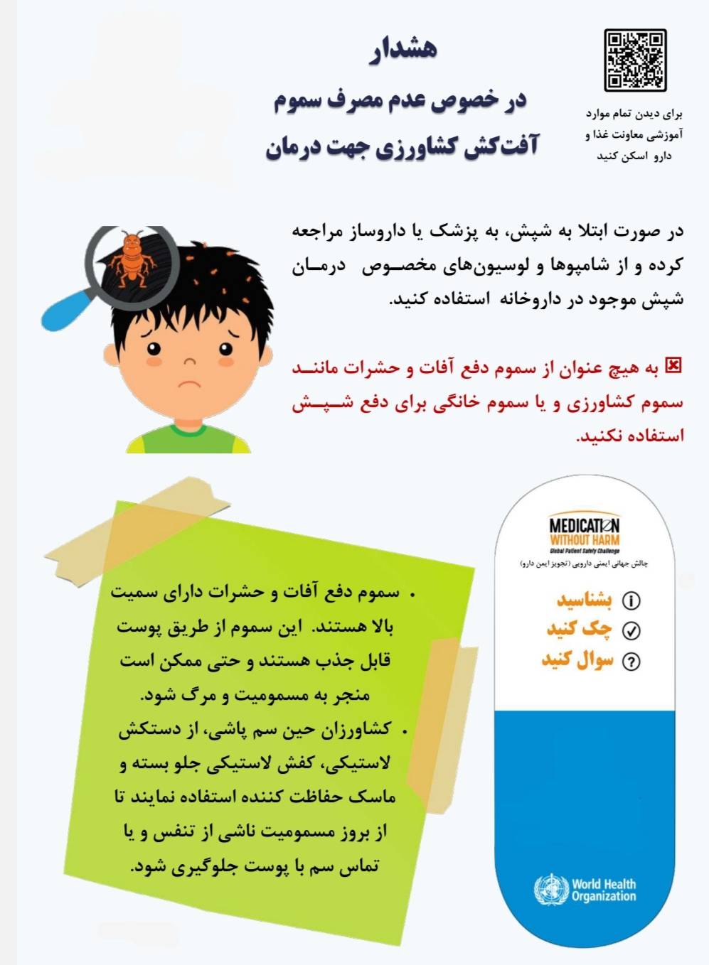 داروها را دور از ديد و دسترس كودكان و در ارتفاع بالا و در كمد مجهز به قفل نگه‌داری نماييد. همچنین بهتر است داروهای بیمار افسرده و یا بیمارانی که تعادل رفتاری ندارند و یا افرادی که سابقه اقدام به خودکشی دارند را دور از دسترس ایشان قرار داده و مراقبت دقیقی در خصوص میزان داروی مصرفی ایشان به عمل‌آورید.