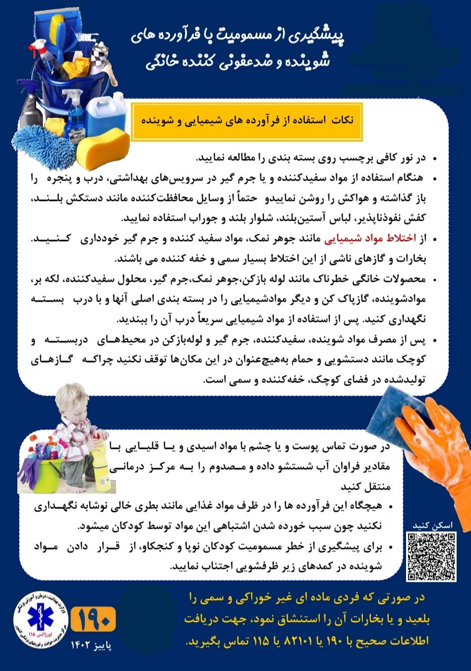 ایشان همچنین درخصوص واکنش درزمان بروز مسمومیت های دارویی خاطرنشان کرد: در مسمومیت‌های تعمدی با دارو، بهتر است در صورت هوشیاری فرد مسموم، نام دارو یا داروهای مصرفی و تعداد هر یک از آن‌ها را از وی بپرسید و به کادر درمانی اطلاع دهید. در صورت برخورد با فرد مسموم غیر هوشیاری که در کنارش بسته‌های داروی خورده شده وجود دارد، ضمن حفظ خونسردی خود و عدم القاء استفراغ در این فرد، بسته‌های دارویی را همراه بیمار به بیمارستان ببرید. در اغلب مسمومیت‌های اتفاقی و یا تعمدی با داروها، برای اطلاع از نحوه انجام اقدامات اولیه، هرچه سریع‌تر با شماره تلفن 190 داخلی3 (مرکز اطلاع‌رسانی داروها و سموم) و یا اورژانس 115 تماس بگیرید.