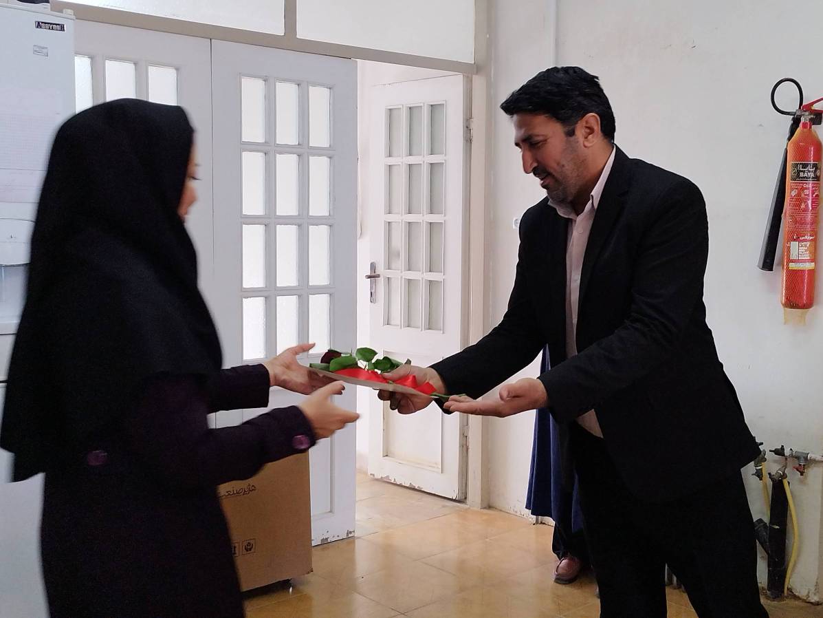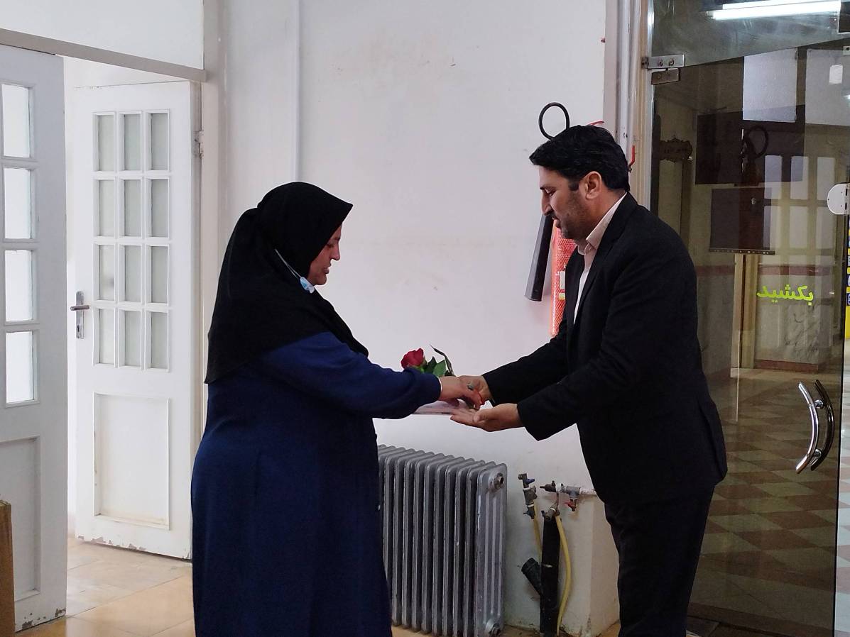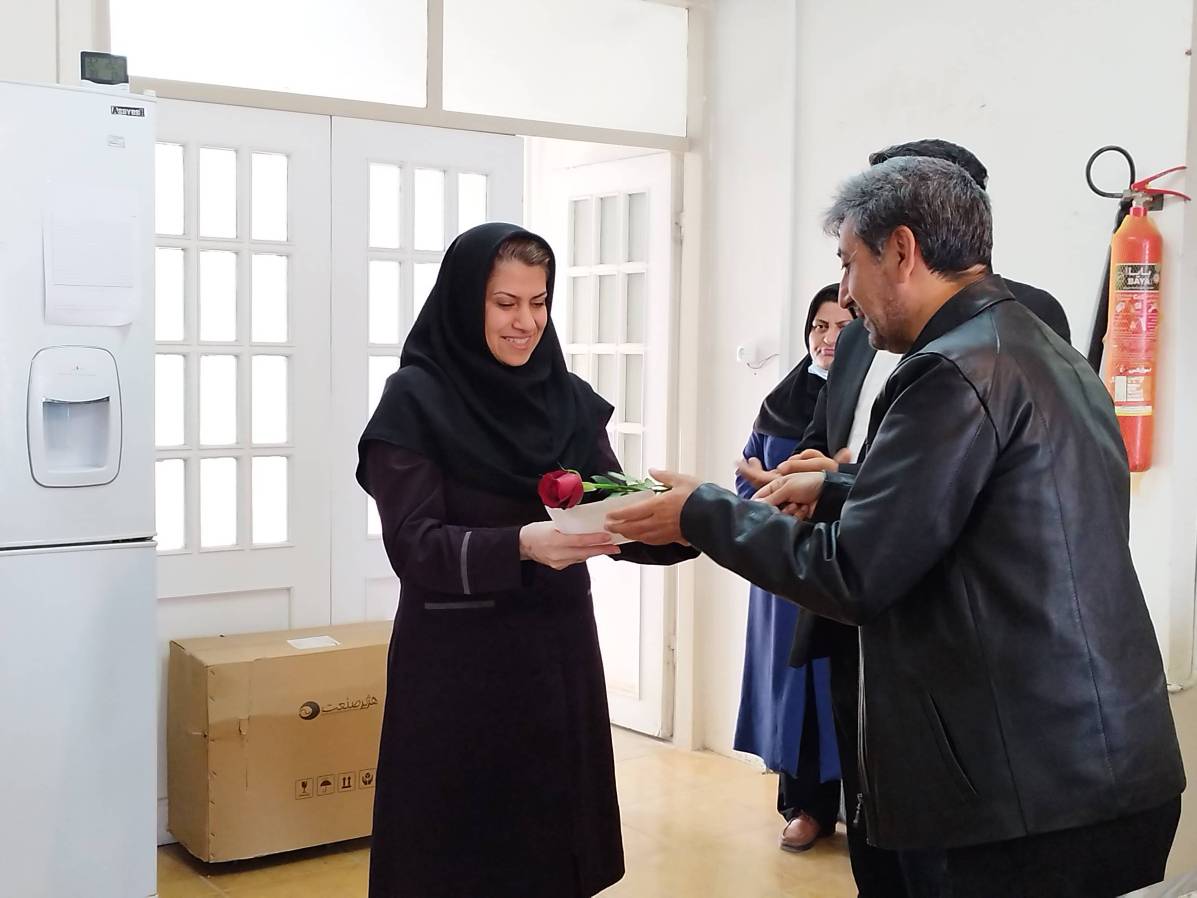 در پایان معاون غذا ودارو و مسئول حراست با اهدای شاخه گل و لوح تقدیر ازتلاش و زحمات مستمر پرسنل آزمایشگاه قدردانی نمودند.