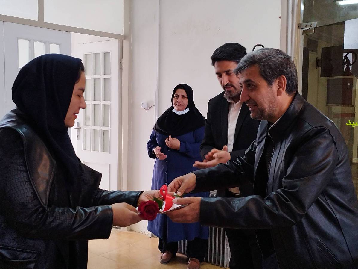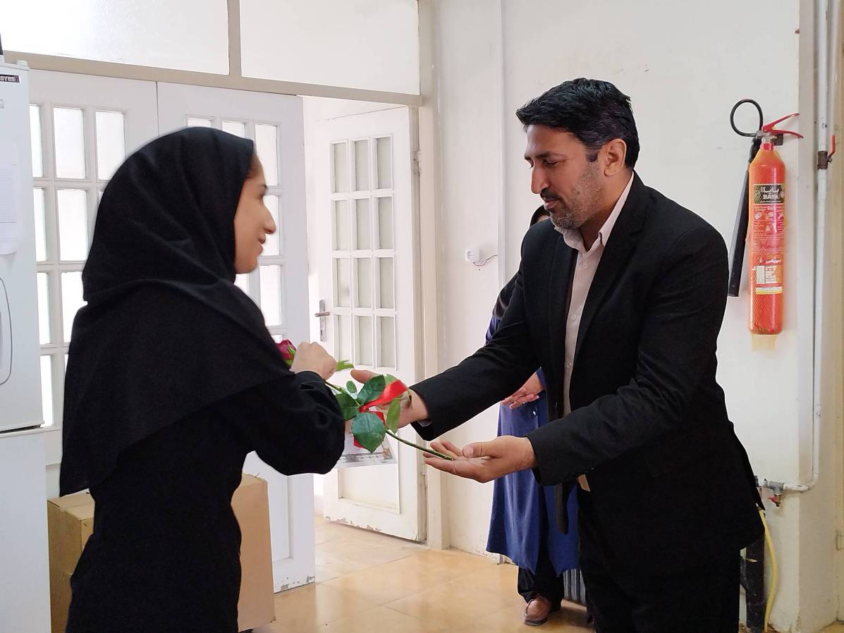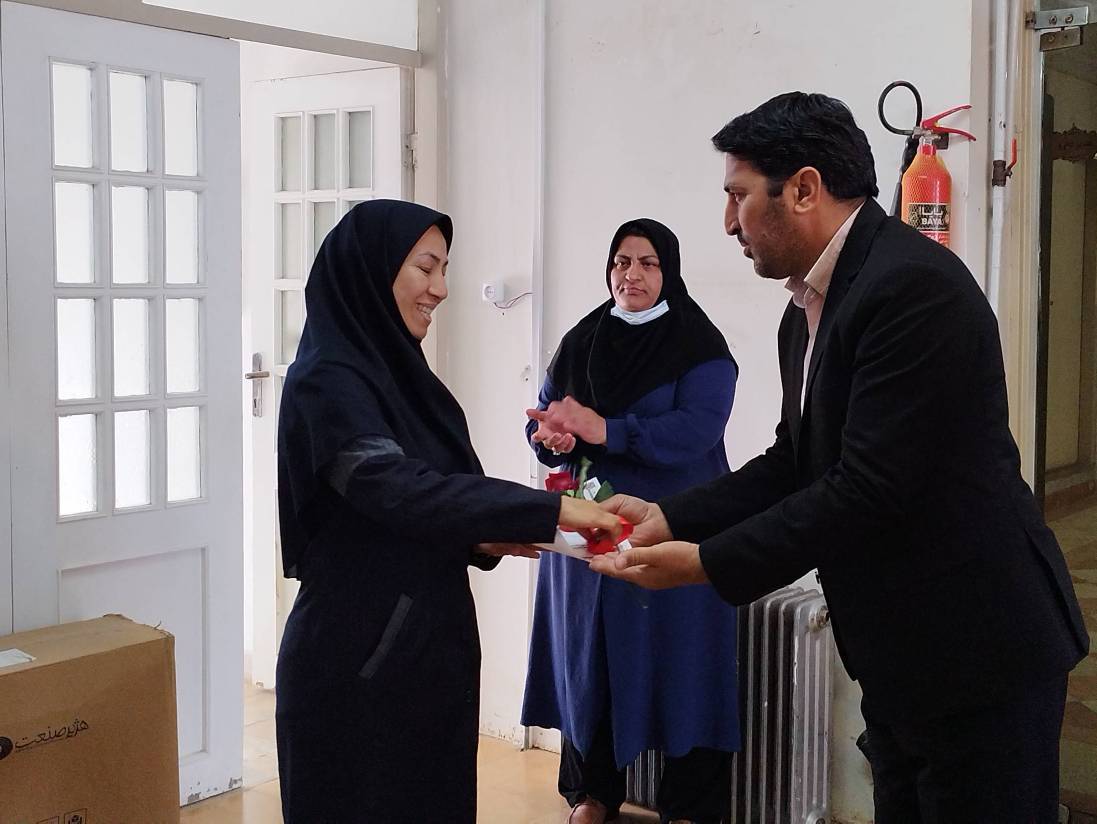 در پایان معاون غذا ودارو و مسئول حراست با اهدای شاخه گل و لوح تقدیر ازتلاش و زحمات مستمر پرسنل آزمایشگاه قدردانی نمودند.