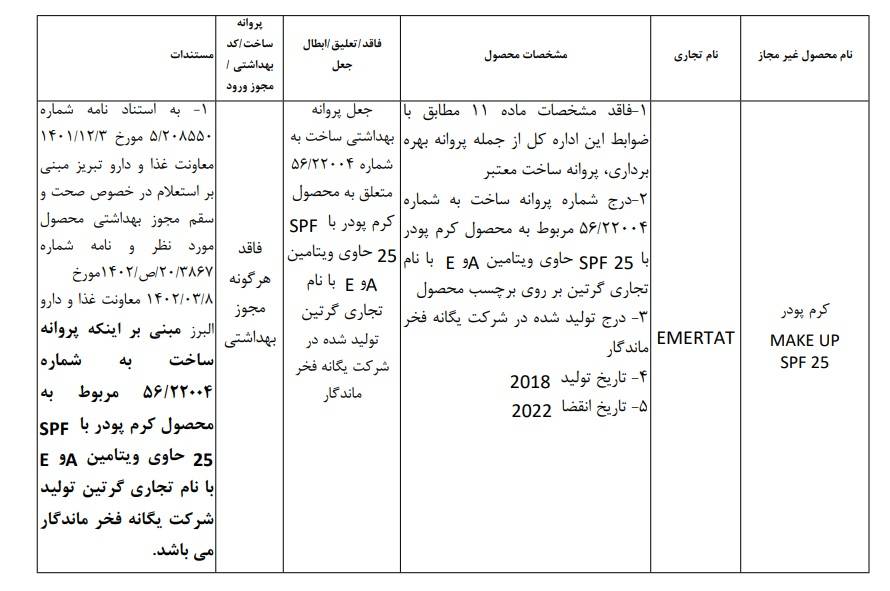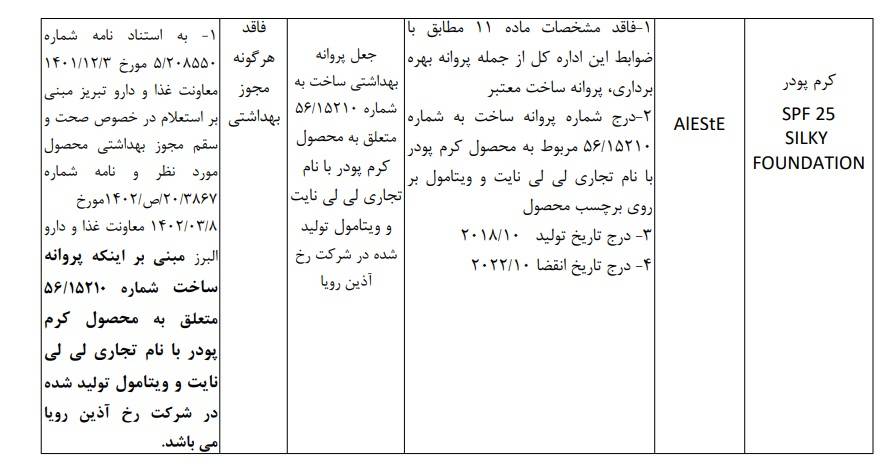 اداره کل امور فراورده‌های آرایشی و بهداشتی سازمان غذا و دارو دستور جمع آوری ۷ محصول غیرمجاز از سطح عرضه را صادر کرد.