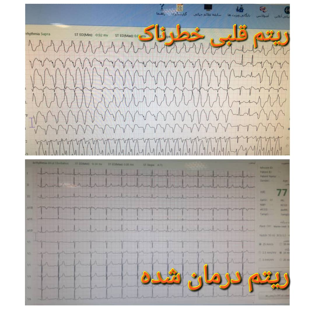 افشارنیک افزود: با توجه به داده های دستگاه اهدائی خیر سلامت(تله مدیسین)سریعا داروی تخصصی ریتم خطرناک قلبی توسط کارشناسان اورژانس ۱۱۵ تزریق شد و پس از اکسیژن تراپی،سرم تراپی و تحت مانیتورینگ به مرکز آموزشی پژوهشی درمانی ۲۲ بهمن انتقال داده شد، سپس تحت مراقبت ویژه قرار گرفت و بعد از ۱۷ساعت با وضعیت عمومی خوب و پایدار از بیمارستان ترخیص شد. مصطفی افشارنیک در پایان از خیرین سلامت که از ابتدای سال دو دستگاه تله مدیسین به مرکز مدیریت حوادث و فوریت های پزشکی اهدا نموده اند تشکر نمود و یادآور شد:تاکنون با کمک خیرین سلامت ۱۵ دستگاه تشخیصی تله مدیسین به اورژانس ۱۱۵ نیشابور اهدا شده که کمک شایانی به نجات مصدومین و بیماران داشته است.با تشکر از همکاران عملیاتی آقایان علی فراستی و عباس علی اکبری