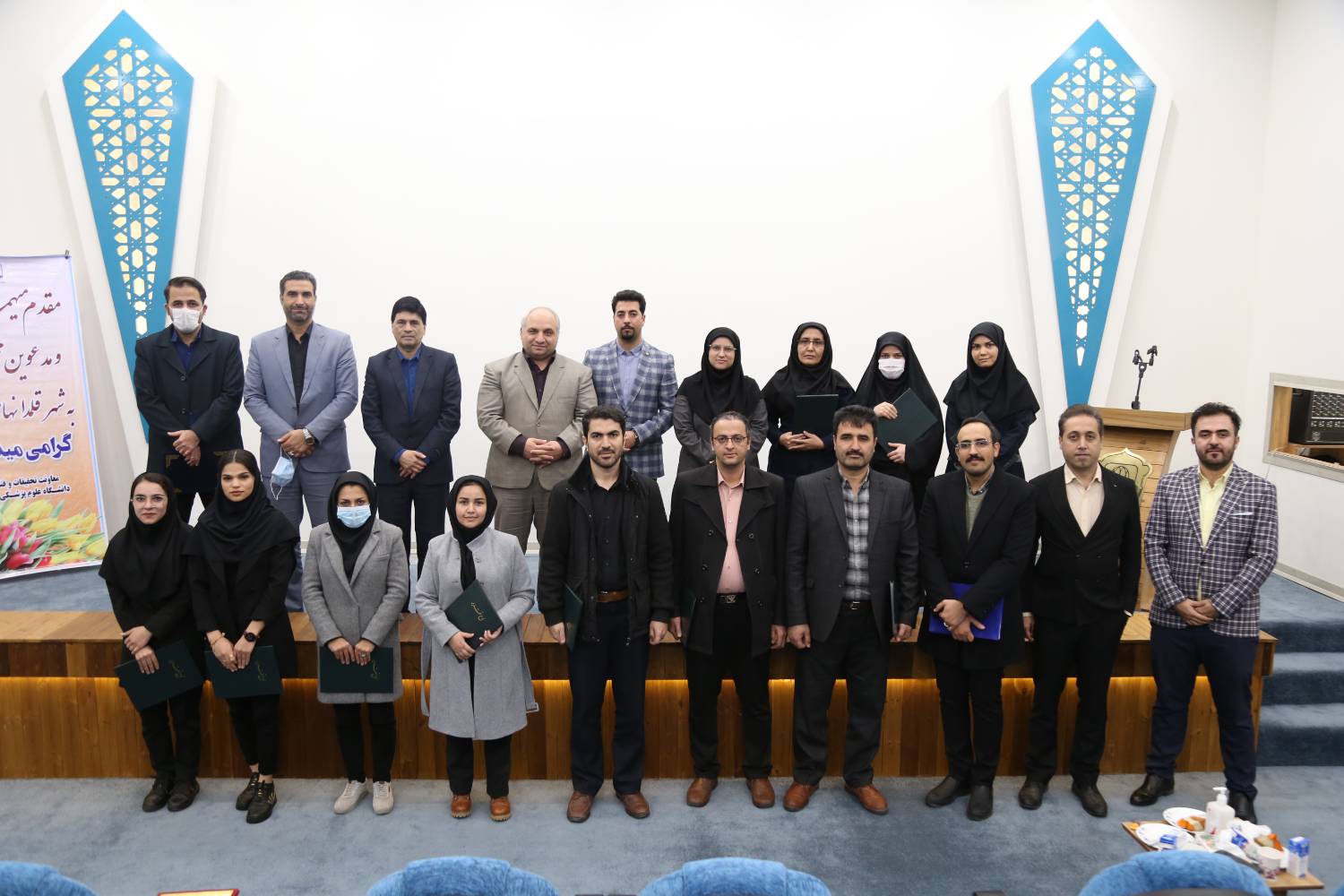 در این مراسم همچنین، از دکتر مجید درّودی، سرپرست و عضو هیئت علمی دانشگاه، به عنوان پژوهشگر برتر استان خراسان رضوی و همچنین از پژوهشگران، کارکنان و دانشجویان برتر دانشگاه، با اهدای لوح سپاس، تقدیر به عمل آمد.