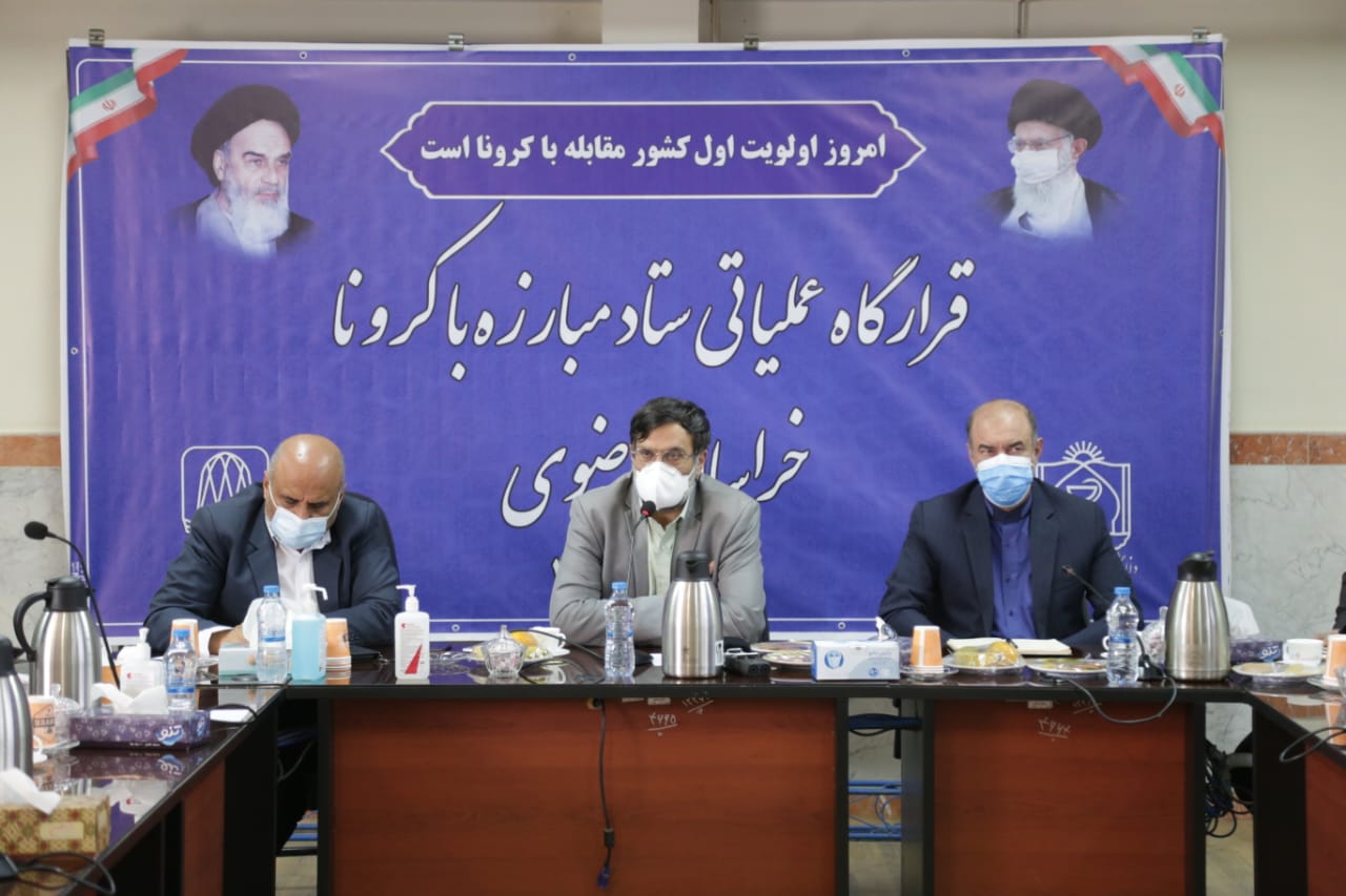 قرارگاه عملیاتی ستاد مبارزه با کرونای خراسان رضوی صبح پنجشنبه بیستم آبان ماه با حضور رئیس دانشگاه علوم پزشکی مشهد و دبیر این قرارگاه عملیاتی؛ امام جمعه؛ فرماندار و جمعی از مدیران حوزه سلامت نیشابور در سالن شهدای سلامت مرکز آموزشی پژوهشی درمانی ۲۲بهمن برگزار شد